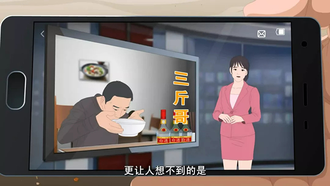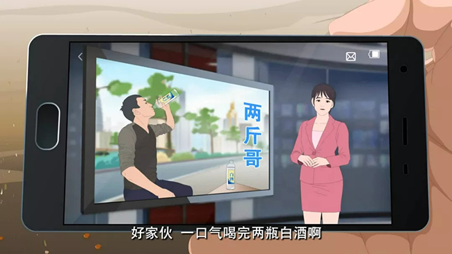 主持人:“最近啊,東北出了個兩斤哥,好家伙,一口氣喝完兩瓶白酒啊!”