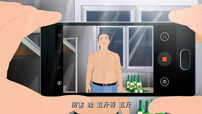 張?zhí)帲骸袄蟿?,就大壯這個事,可不是工作時間和工作原因。你再看看這個,(把手機(jī)拿出來上邊視頻播放大壯喝酒的畫面)現(xiàn)在網(wǎng)上傳的都是,而且,醉酒是不能認(rèn)定為工傷的,這一點(diǎn)你不知道???”